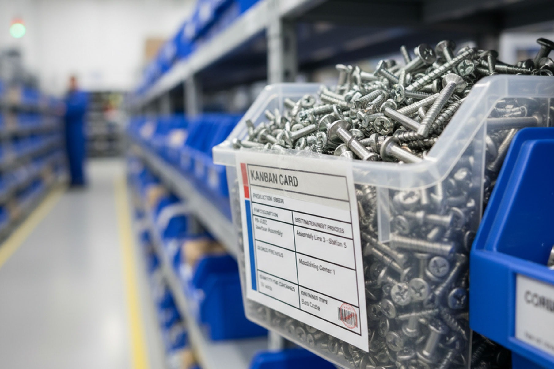 L'addetto alla logistica (o il reparto a monte) passa, vede il cartellino nella rastrelliera, lo prende e legge: "Servono 100 viti per la postazione X. Vado in magazzino/produzione a prenderle".